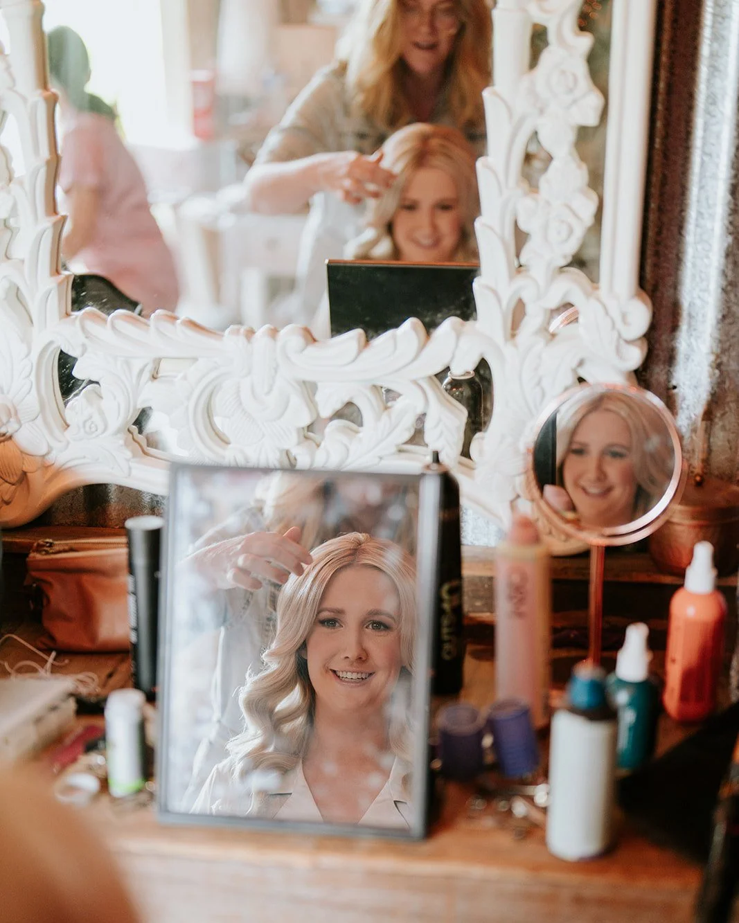 Bride hair and makeup and bridesmaids hair by Michelle Mae. Bridesmaids own makeup.