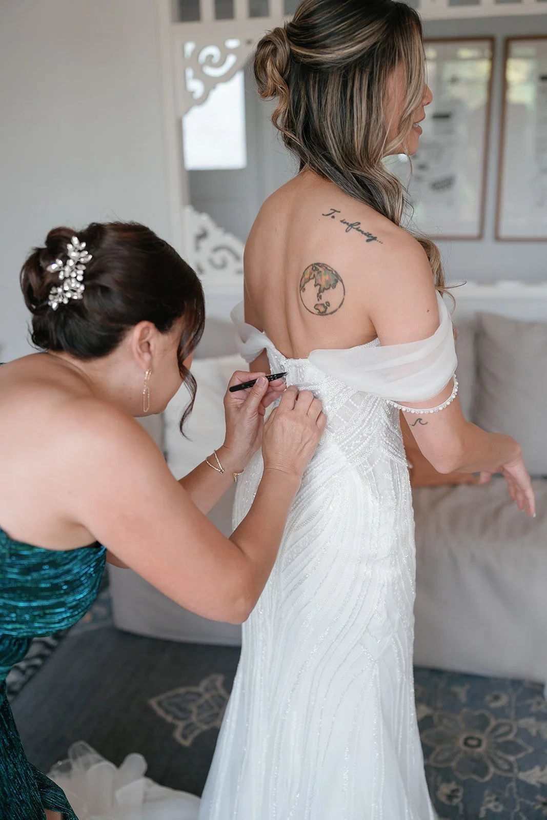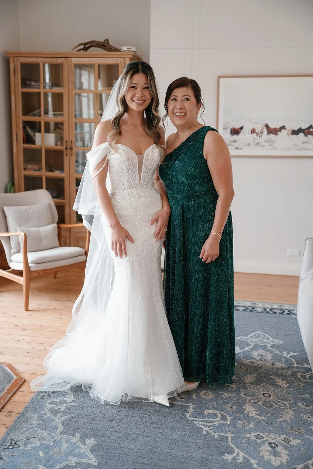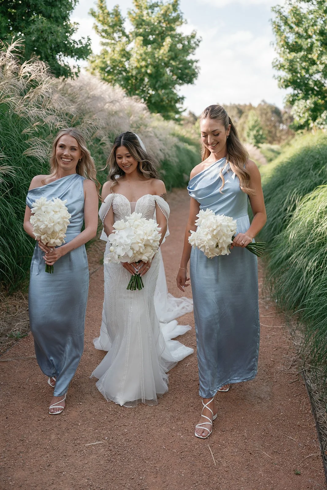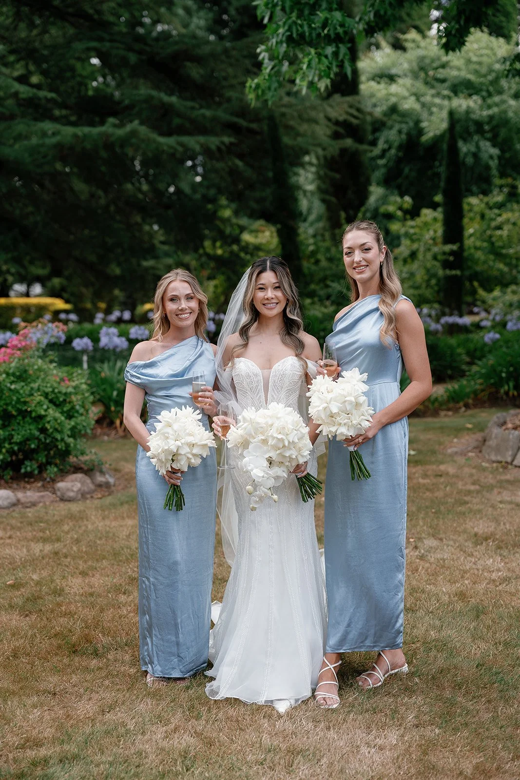 Simone’s hair was styled into a romantic half up-style with a textured bun, by adding face framing pieces and waves softens the overall look. Her makeup featured, natural, bronze and neutral tones to enhance her effortless beauty.